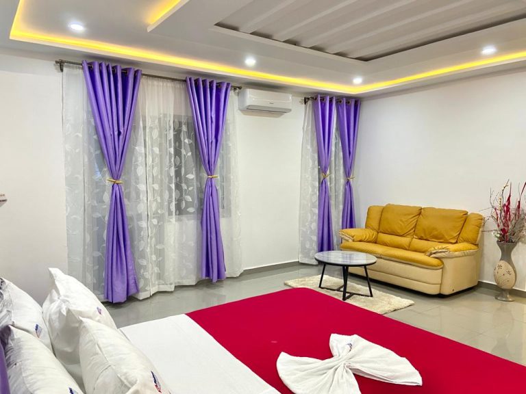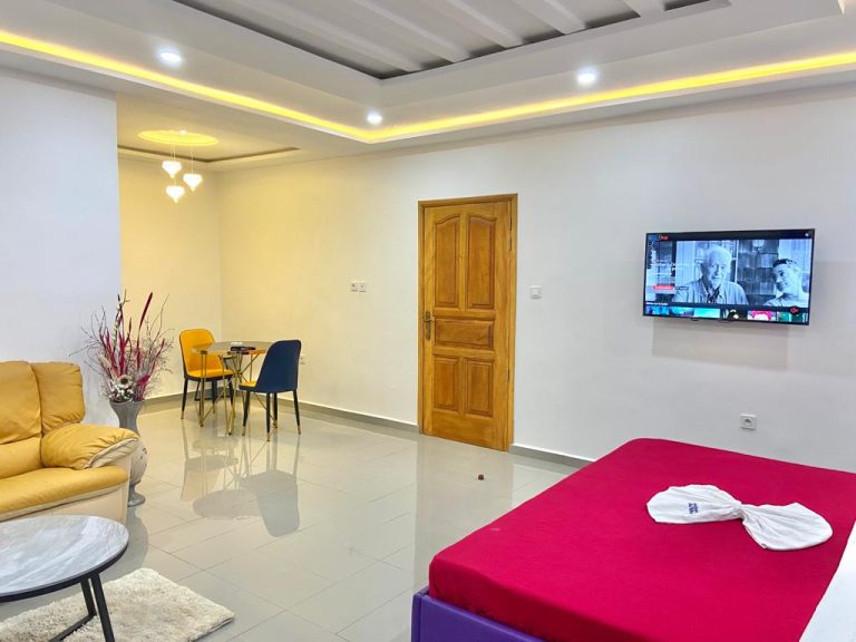 Découvrez le summum de la détente à Bonamoussadi, Douala. Cette chambre de prestige, idéale pour les couples, se distingue par son cadre luxueux et ses équipements bien-être. Le point fort ? Un Jacuzzi privé pour vos moments de relaxation, complété par un lit capitonné au matelas orthopédique pour un repos total et une expérience inoubliable.